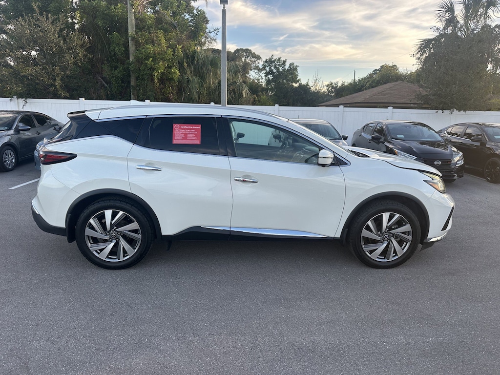 Cargo Package (Cargo Area Protector, Cargo Net, First Aid Kit, and Retractable Cargo Cover), Nissan Certified Certified, CVT with Xtronic, AWD, 11 Speakers, 4-Wheel Disc Brakes, 4.667 Axle Ratio, ABS brakes, Air Conditioning, Alloy wheels, AM/FM radio: SiriusXM, AM/FM/CD/MP3/WMA Audio System, Auto High-beam Headlights, Auto-dimming Rear-View mirror, Automatic temperature control, Blind Spot Warning, Brake assist, Bumpers: body-color, Carpeted Floor Mats & Carpeted Cargo Mat, CD player, Child-Seat-Sensing Airbag, Compass, Delay-off headlights, Driver door bin, Driver vanity mirror, Dual front impact airbags, Dual front side impact airbags, Electronic Stability Control, Exterior Parking Camera Rear, Four wheel independent suspension, Front anti-roll bar, Front Bucket Seats, Front Center Armrest, Front dual zone A/C, Front fog lights, Front reading lights, Fully automatic headlights, Garage door transmitter: HomeLink, Heated door mirrors, Heated Front Bucket Seats, Heated front seats, Heated rear seats, Heated steering wheel, Illuminated entry, Knee airbag, Leather Shift Knob, Leather-Appointed Seat Trim, Low tire pressure warning, Memory seat, Navigation system: NissanConnect Navigation, NissanConnect featuring Apple CarPlay and Android Auto, Occupant sensing airbag, Outside temperature display, Overhead airbag, Overhead console, Panic alarm, Passenger door bin, Passenger vanity mirror, Power door mirrors, Power driver seat, Power Liftgate, Power passenger seat, Power steering, Power windows, Radio data system, Rear anti-roll bar, Rear Bumper Protector, Rear reading lights, Rear seat center armrest, Rear side impact airbag, Rear window defroster, Rear window wiper, Remote keyless entry, Roof rack: rails only, Security system, Speed control, Speed-sensing steering, Speed-Sensitive Wipers, Splash Guards, Split folding rear seat, Spoiler, Steering wheel mounted audio controls, Tachometer, Telescoping steering wheel, Tilt steering wheel, Traction control, Trip computer, Turn signal indicator mirrors, Variably intermittent wipers, and Wheels: 20 Machined Aluminum-Alloy.