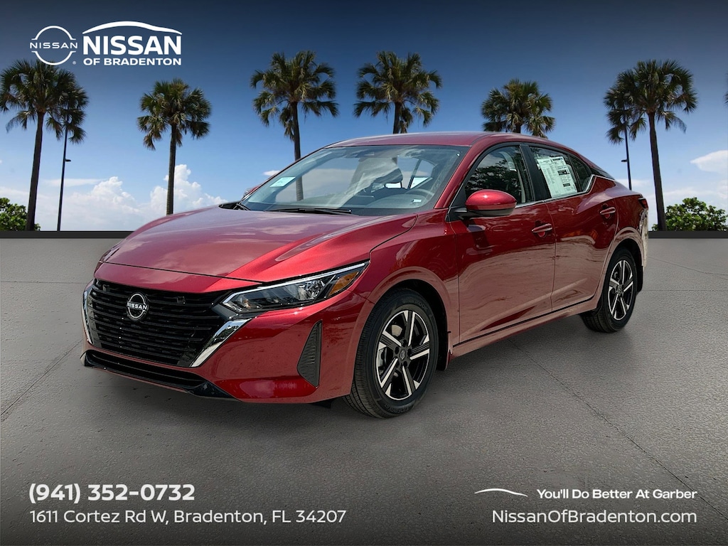 All-Weather Package (Dual Zone Auto Climate Control, Heated Exterior Mirrors, Heated Front Seats, Leather-Wrapped Heated Steering Wheel, and Remote Engine Start), Trunk Package (Hide-A-Way Trunk Net), CVT with Xtronic, Charcoal Cloth, 16 Alloy Wheels, 4-Wheel Disc Brakes, 8 Speakers, ABS brakes, Air Conditioning, Alloy wheels, AM/FM radio: SiriusXM, Auto High-beam Headlights, Blind Spot Warning, Body Colored Splash Guards (4-Piece), Brake assist, Bumpers: body-color, Carpeted Floor Mats w/Trunk Mat, Clear Rear Bumper Protector, Delay-off headlights, Door Sill Plates, Driver door bin, Driver vanity mirror, Dual front impact airbags, Dual front side impact airbags, Electronic Stability Control, Four wheel independent suspension, Front anti-roll bar, Front Bucket Seats, Front Center Armrest, Front reading lights, Fully automatic headlights, Illuminated entry, Knee airbag, Low tire pressure warning, Nissan USB Charging Cable Set, NissanConnect featuring Apple CarPlay and Android Auto, Occupant sensing airbag, Outside temperature display, Overhead airbag, Overhead console, Panic alarm, Passenger door bin, Passenger vanity mirror, Power door mirrors, Power steering, Power windows, Premium Paint, Radio data system, Radio: AM/FM w/RDS/MP3/Aux-In, Rear anti-roll bar, Rear Parking Sensors, Rear side impact airbag, Rear window defroster, Remote keyless entry, Security system, Speed control, Speed-sensing steering, Split folding rear seat, Steering wheel mounted audio controls, Tachometer, Telescoping steering wheel, Tilt steering wheel, Traction control, Trip computer, Upgraded Cloth Seat Trim, and Variably intermittent wipers. 30/40 City/Highway MPG Price includes: $500 - Nissan MY25 Sentra Bonus Cash. Exp. 11/03/2025 $500 - Nissan SER MY25 Sentra (SV-SR) Bonus Cash - October. Exp. 11/03/2025