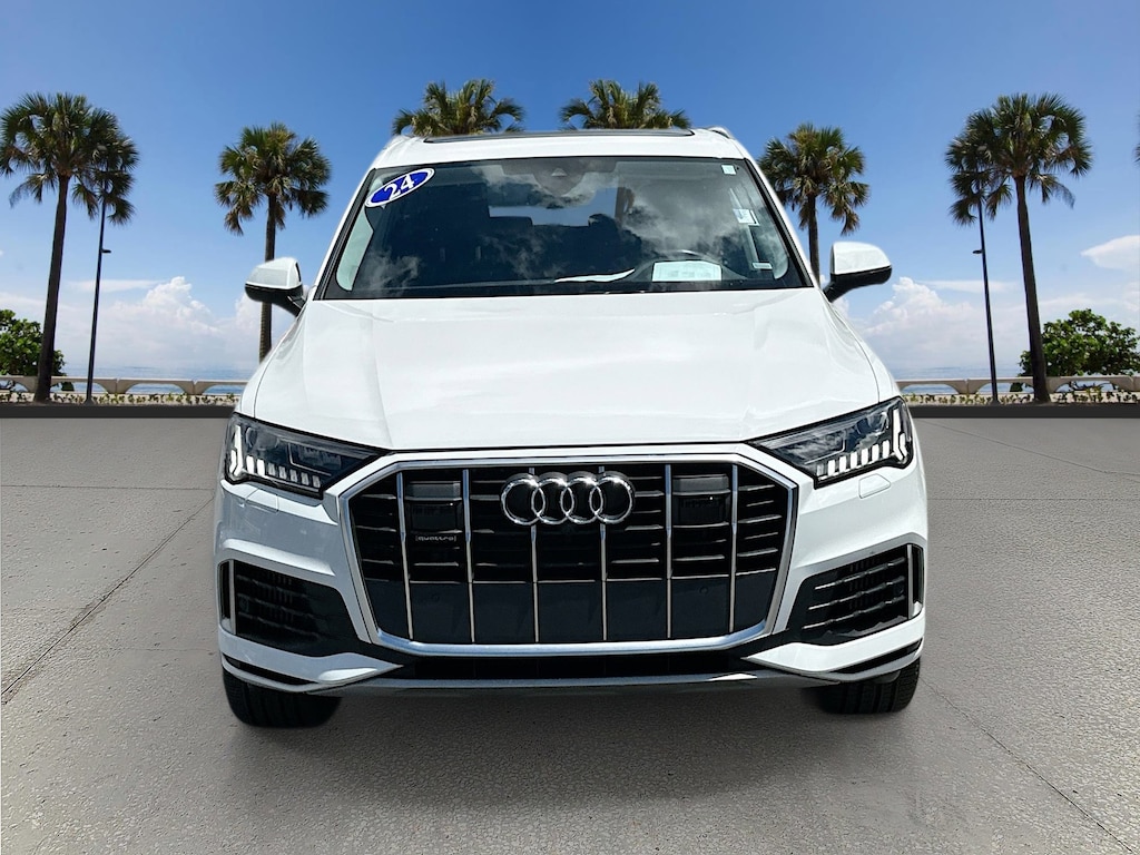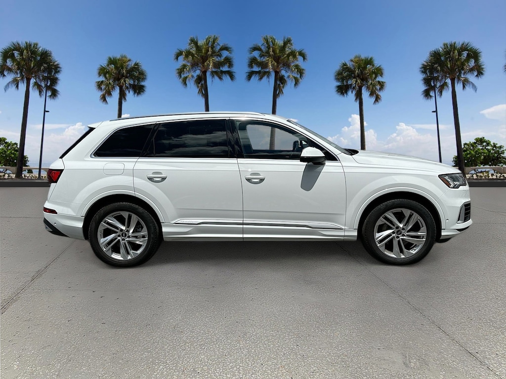 10 Speakers, 3rd row seats: bench, 4-Wheel Disc Brakes, ABS brakes, Air Conditioning, Alloy wheels, AM/FM radio: SiriusXM w/ 360L, Auto High-beam Headlights, Auto-dimming door mirrors, Auto-dimming Rear-View mirror, Automatic temperature control, Brake assist, Bumpers: body-color, Compass, Delay-off headlights, Driver door bin, Driver vanity mirror, Dual front impact airbags, Dual front side impact airbags, Electronic Stability Control, Emergency communication system: Audi connect CARE, Exterior Parking Camera Rear, Four wheel independent suspension, Front anti-roll bar, Front Bucket Seats, Front Center Armrest, Front dual zone A/C, Front fog lights, Front reading lights, Fully automatic headlights, Garage door transmitter: HomeLink, Genuine wood door panel insert, Heated door mirrors, Heated Front Bucket Seats, Heated front seats, Illuminated entry, Leather Seating Surfaces, Leather Shift Knob, Leather steering wheel, Low tire pressure warning, Memory seat, Navigation system: Audi MMI Navigation plus with Touch Response, Occupant sensing airbag, Outside temperature display, Overhead airbag, Overhead console, Panic alarm, Passenger door bin, Passenger vanity mirror, Power door mirrors, Power driver seat, Power Liftgate, Power moonroof: Panoramic, Power passenger seat, Power steering, Power windows, Radio data system, Radio: Audi Sound System, Rain sensing wipers, Rear air conditioning, Rear anti-roll bar, Rear fog lights, Rear reading lights, Rear seat center armrest, Rear side impact airbag, Rear window defroster, Rear window wiper, Reclining 3rd row seat, Remote keyless entry, Security system, Speed control, Speed-sensing steering, Split folding rear seat, Spoiler, Steering wheel memory, Steering wheel mounted audio controls, Tachometer, Telescoping steering wheel, Tilt steering wheel, Traction control, Trip computer, Turn signal indicator mirrors, Variably intermittent wipers, and Wheels: 19 5-Arm-Star Design.